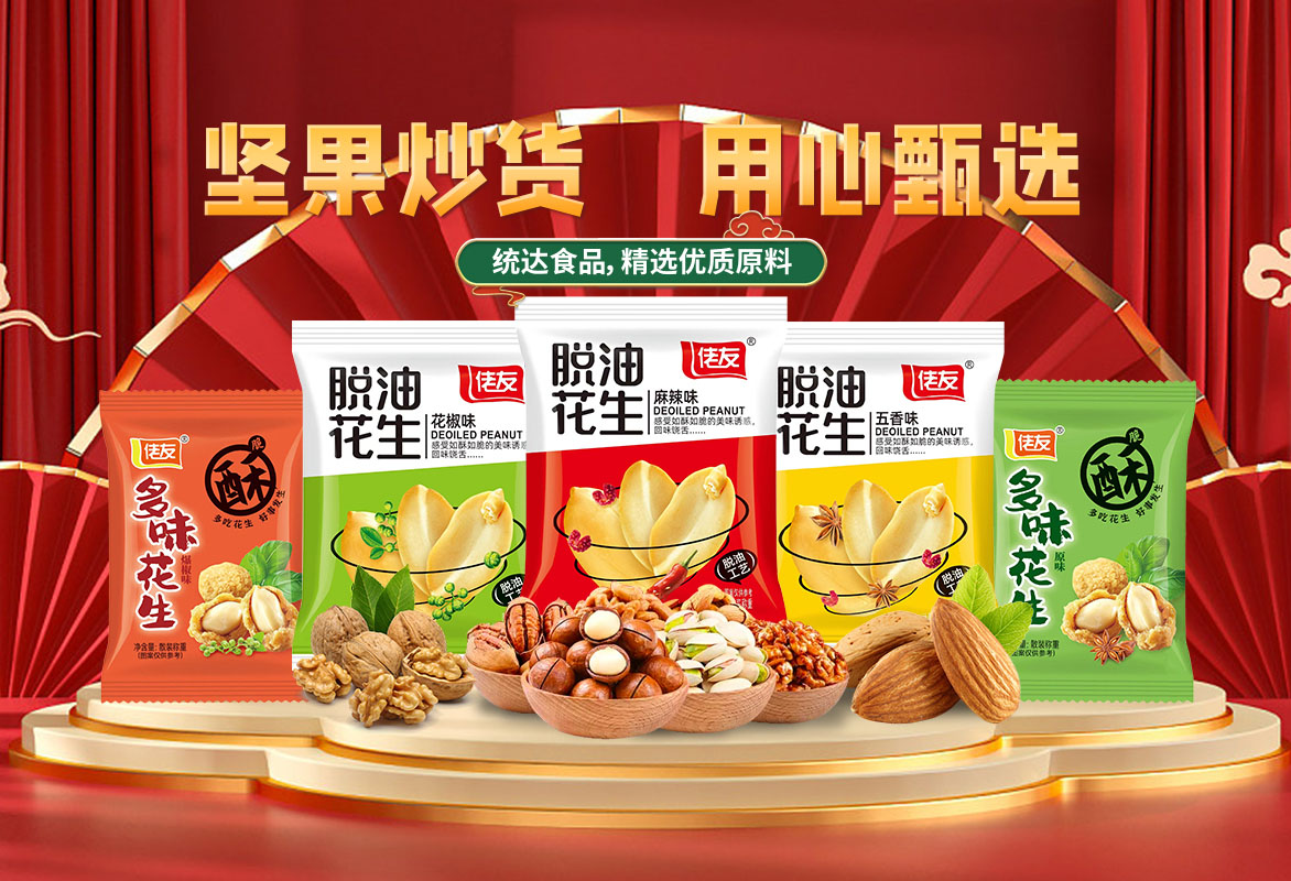 洛陽市統達食品有限公司創建于2013年,坐落于風景秀麗的嵩山腳下,東依省會鄭州、隴海、焦枝兩大鐵路在此交匯,西連高速,洛界高速,縱橫東西南北,207國道,交通便利。當地環境優美。經濟繁榮昌盛,實為興業辦企,鴻運福順的好地方。少林寺,白馬寺,龍門石窟,玄奘故里等名勝古跡星羅棋布,近在咫尺,盡展千年華夏文明?! ∥覐S是一家集生產,研制,銷售為一體的食品加工企業,總投資1500萬元,廠房占地面積5000平方米,員工100余人,其中技術人員20余人,年加工能力達1500余噸。公司以堅果炒貨為主導,自主三大品牌:統達牌、紅仁館牌、佬友牌和授權品牌速達,主要產品有酒鬼花生系列,麻辣花生系列,香辣酥系列,果仁裹粉類系列,怪味胡豆系列,蠶豆、青豆系列等多個品類。產品暢銷全國各地,深受用戶好評。產品選自上等原料經多次精選而制,秉承濃郁的特色風味,保留其原材料的營養和原汁原味,富含不飽和脂肪酸和人體必需的氨基酸和鋅元素,不含膽固醇,黃曲霉素,不添加防腐劑、著色劑;具有濃郁獨特的香味,是真正的“從土地到餐桌”的健康食品。產品特點:色澤金黃,顆粒飽滿,然后經多種工藝加精良的天然配料精制而成,鎖生產出來的產品既保持著產品的獨到的口味,又不失產品天然的營養成分,滋味純正,辣椒鮮紅食之麻,辣,香,酥,甜,口感獨特,食后滿口生香,欲罷不能。久食不厭,老少皆宜,居家旅游,佐食配茶,宴賓饋友之佳品,深受廣大顧客歡迎和贊揚。  我們將以精湛的工藝,科學的管理,嚴格的質量控制,優異的品質保障,以誠信,創新,勤奮,求實的企業精神,立于強者之林,迎接新的挑戰。以飽滿的熱情迎接與你的合作?! ”竟尽耙再|量求生存,以誠信求發展”歡迎有志之士加入我們的團隊,攜手共創美好明天!
